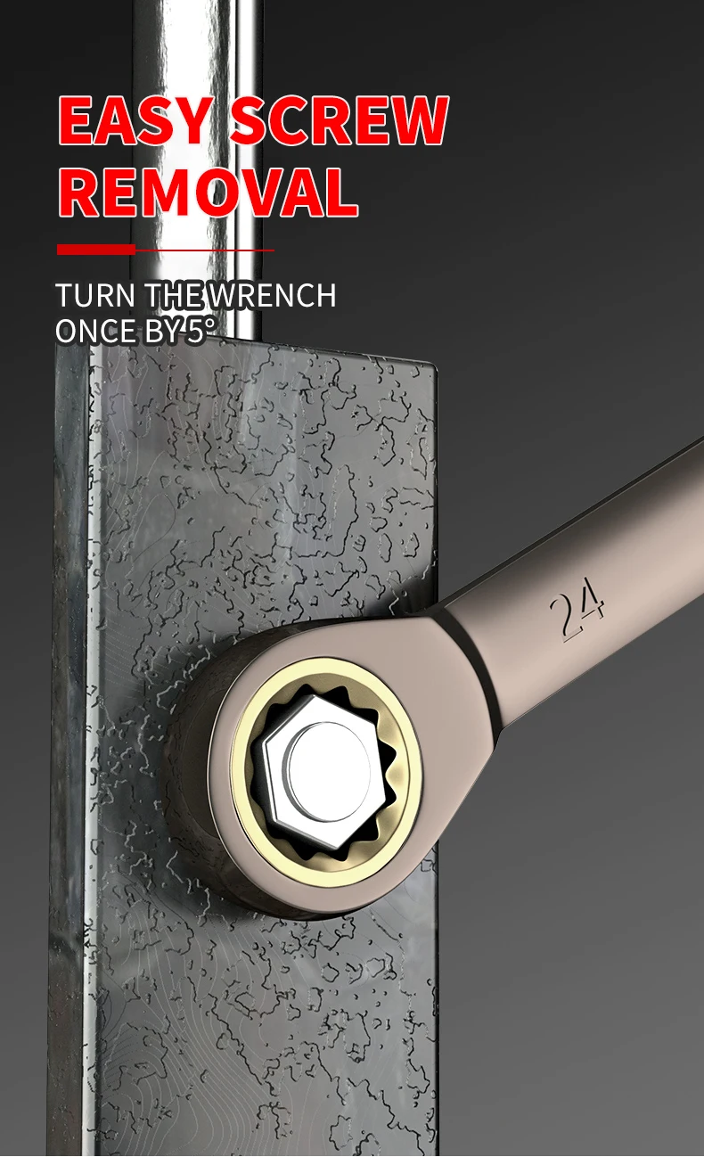 • Dual-use Ratchet Head :The wrench set comes with two heads, one for quick release and the other for standard use, making it versatile and convenient.