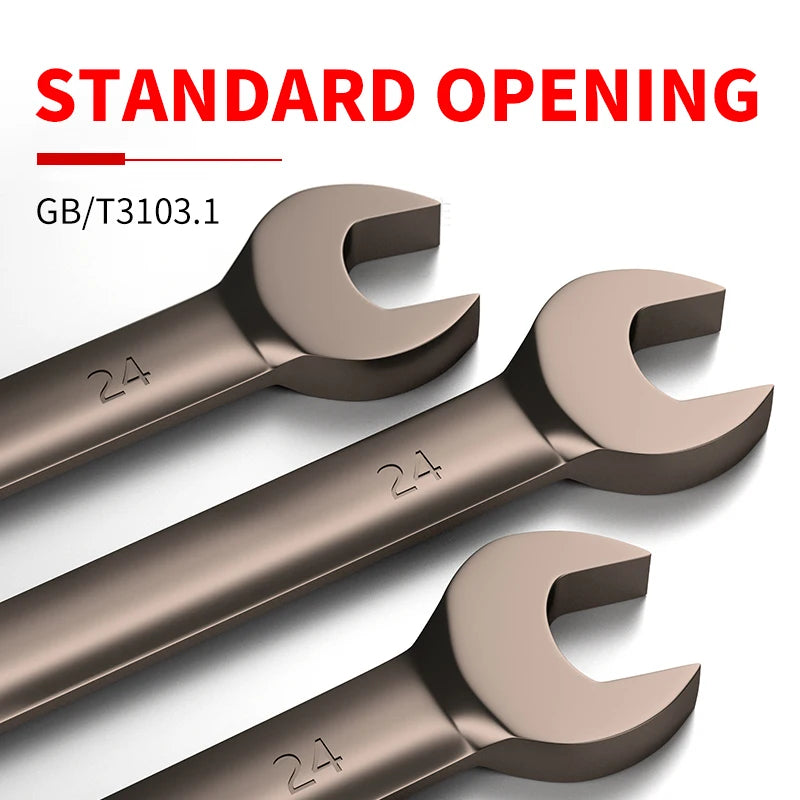 • 180 Degree Rotation :The wrench set allows for 180-degree rotation, providing easy access to tight spaces and making it easier to use.