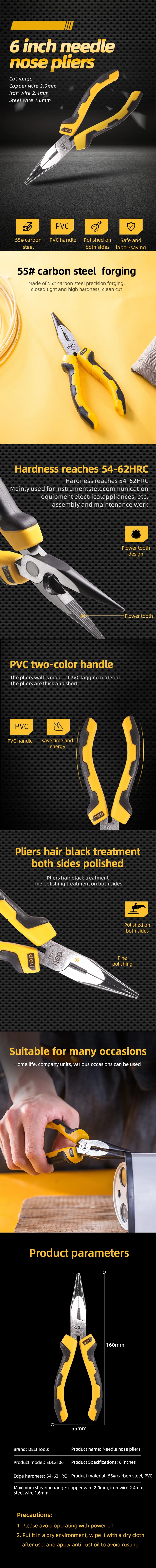 Deli Universal Wire Cutter Combination Pliers Diagonal Pliers Needle Pliers Professional Electrician Plier Hardware Hand Tools